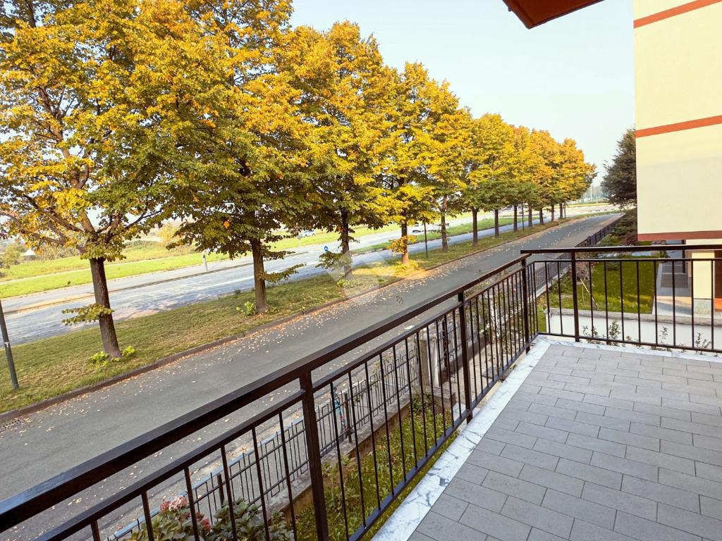 Dal portoncino blindato si accede al disimpegno che ben divide gli ambienti della casa. La zona giorno composta da una spaziosa cucina con porta finestra, permette l'accesso all'ampio balcone perimetrale che circonda l'intero soggiorno, luminoso e ben proporzionato, disponendo di spazio sufficiente per una zona divani, parete tv e tavolo con alcune sedie.