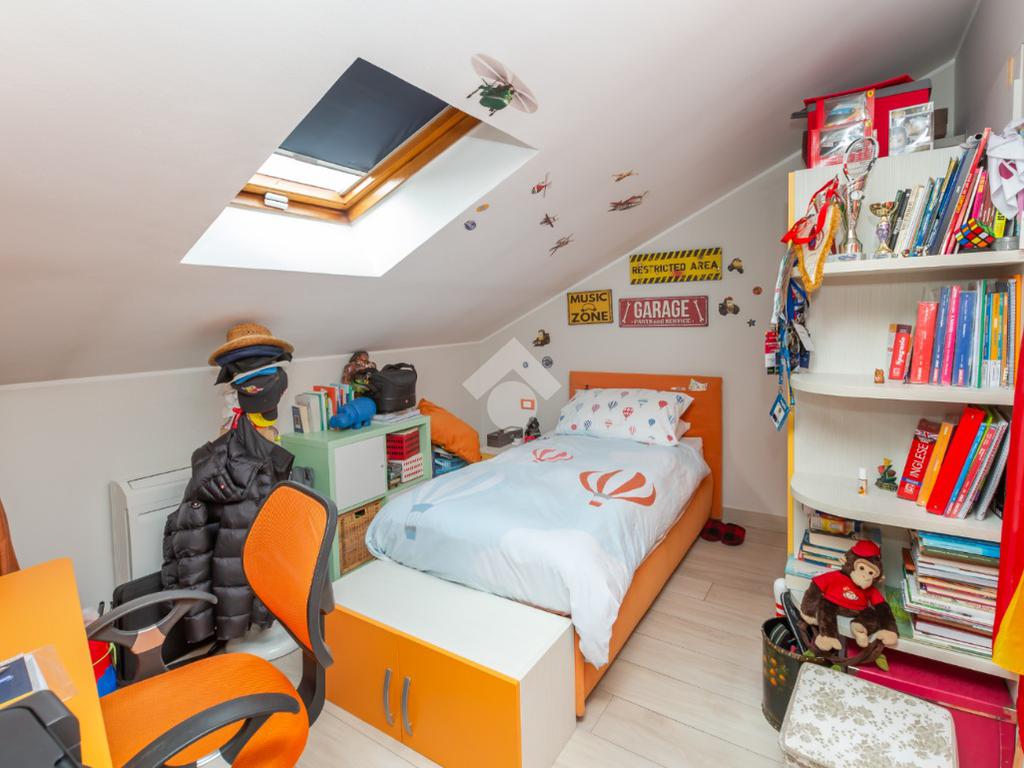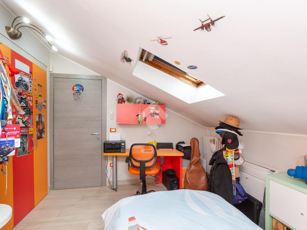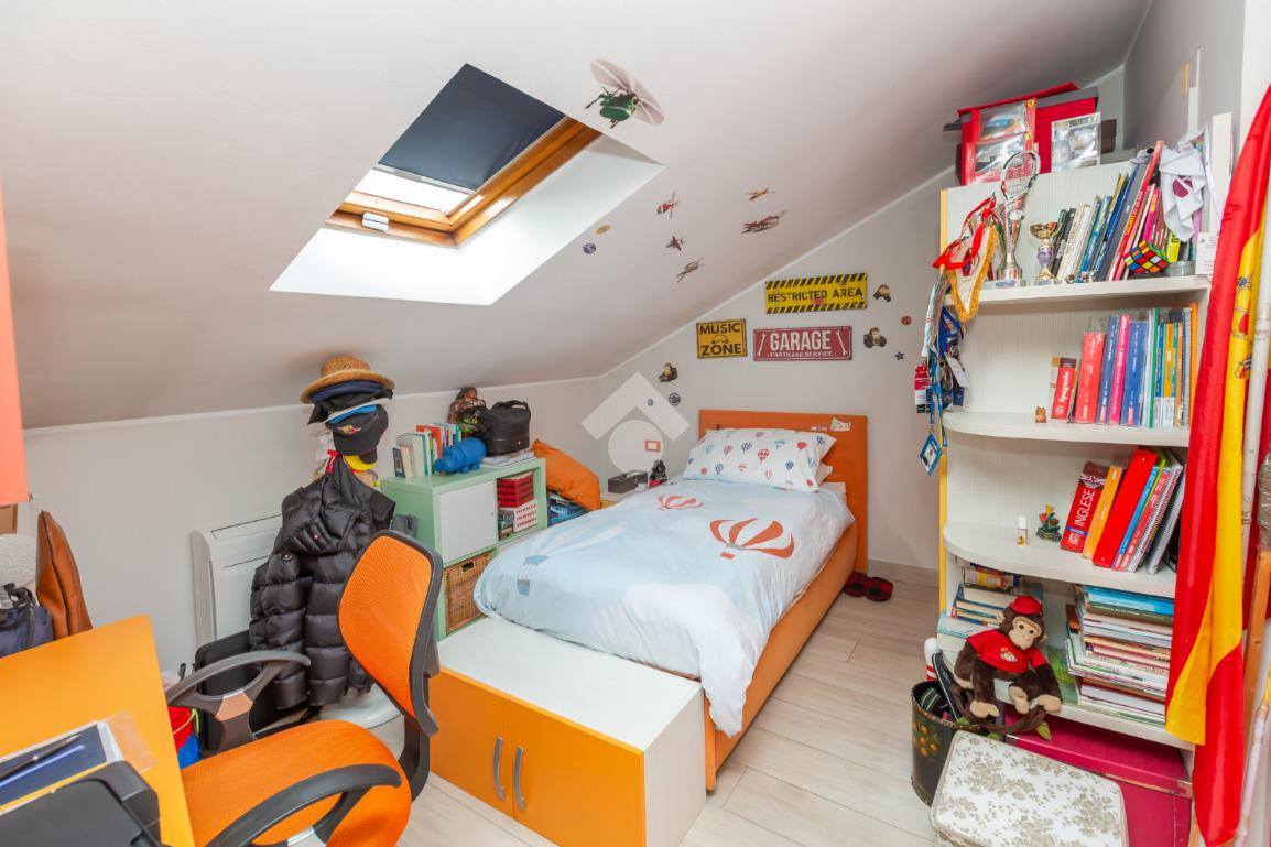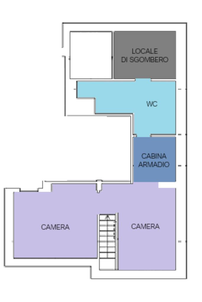 Proseguendo dalle scale interne si giunge alla zona notte, dotata di una camera funzionale adattabile alle esigenze e di una seconda camera che conduce ad un disimpegno adibito a cabina armadi e ad un bagno finestrato dotato di tutti i sanitari utili, di un box doccia.