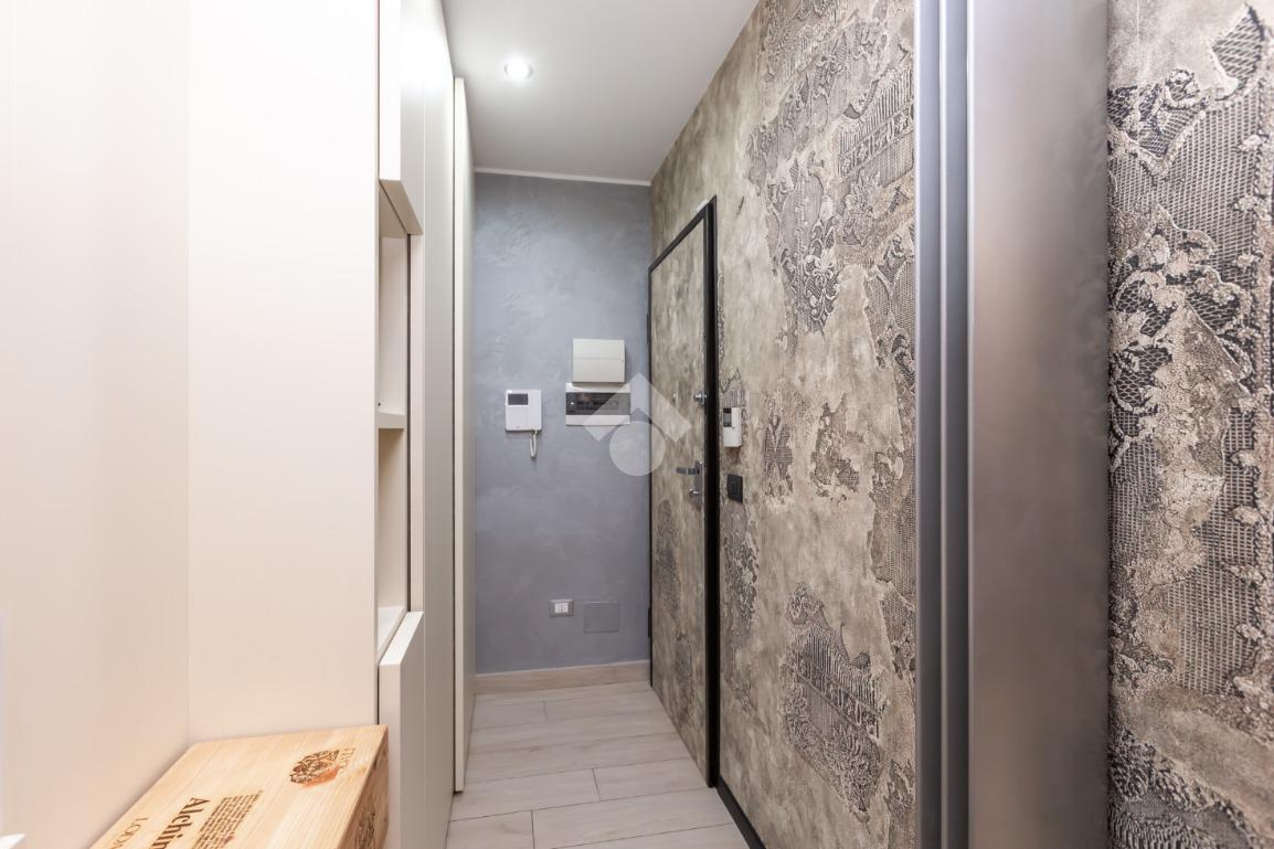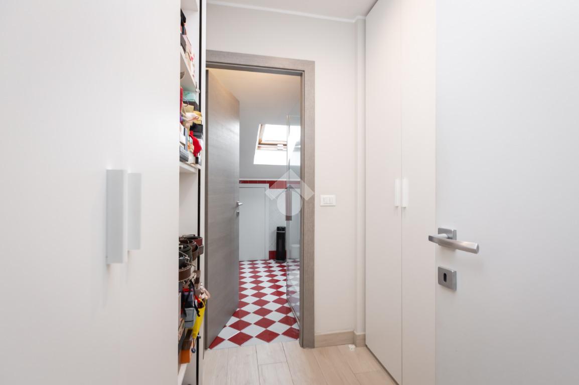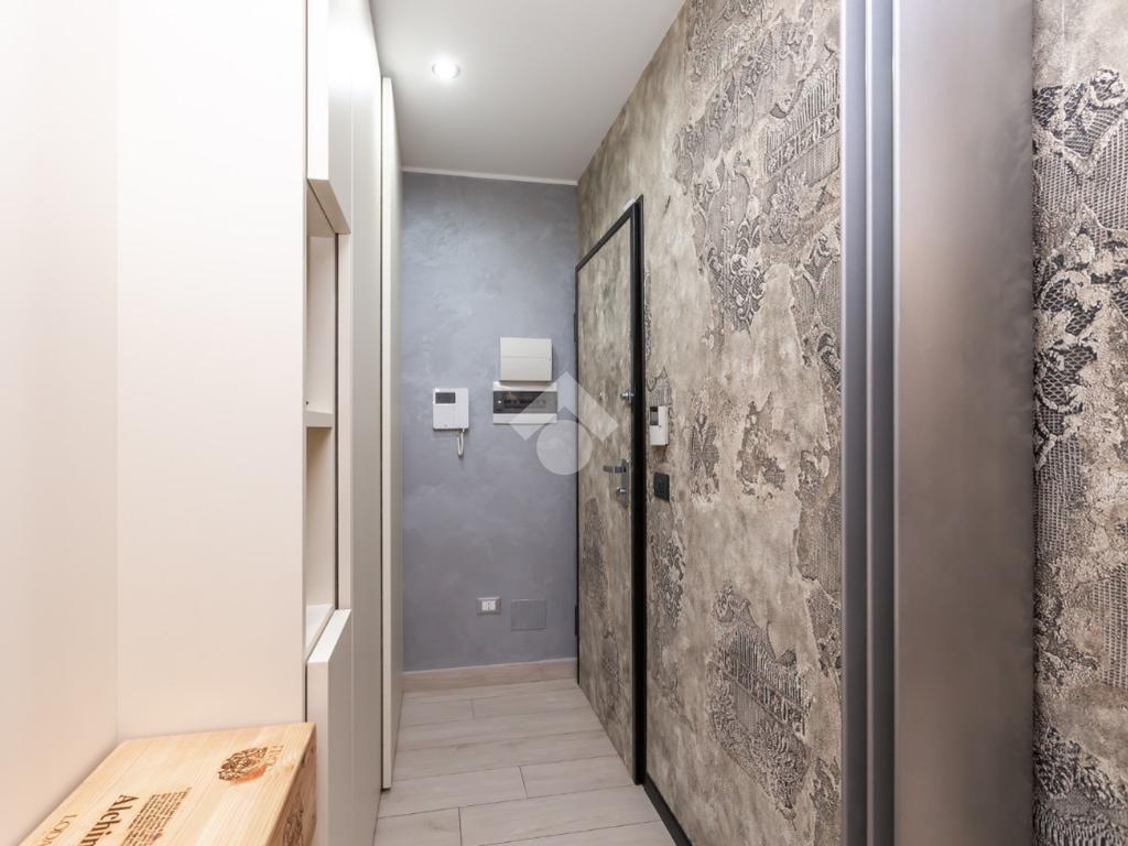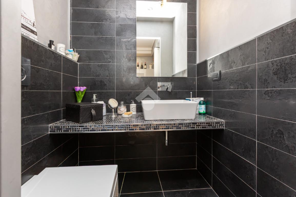Dal portoncino blindato si accede al disimpegno che ben collega la sala da pranzo con cucina a vista e bagno di servizio, dotata di ampio terrazzo, dal soggiorno in cui troviamo un secondo terrazzino.